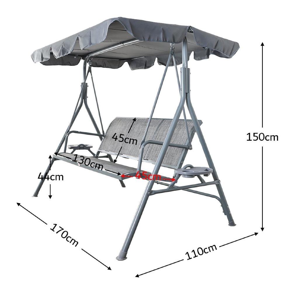 أطلب الآن أرجوحة للحديقة بثلاثة مقاعد مع مظلة - لون رمادي قبل نفاذ الكمية!