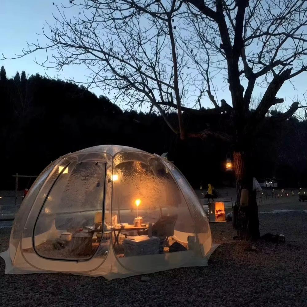 استمتع الآن بخيمة شفافة تجمع بين التصميم الفاخر والمزايا العملية إذا كنت تبحث عن مكان للاسترخاء أو للاستضافة، فهي الخيار المثالي لمحبي التخييم في الهواء الطلق، كما أنها توفر لك مساحة شخصية مريحة، مع حماية تامة من الطقس الخارجي حتى في أجواء الشتاء.
