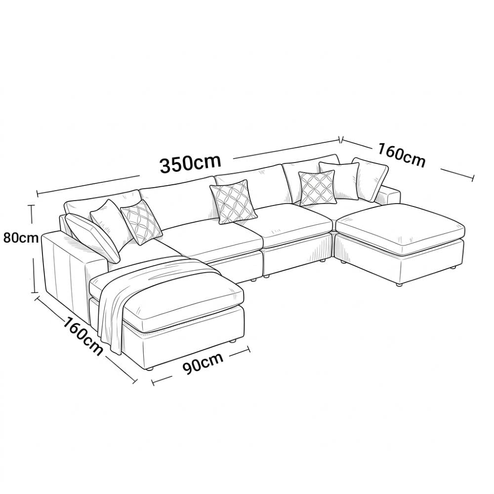 - تصميم حرف U يجعلك تستمتع بمساحة جلوس واسعة تلائم العائلة والضيوف.