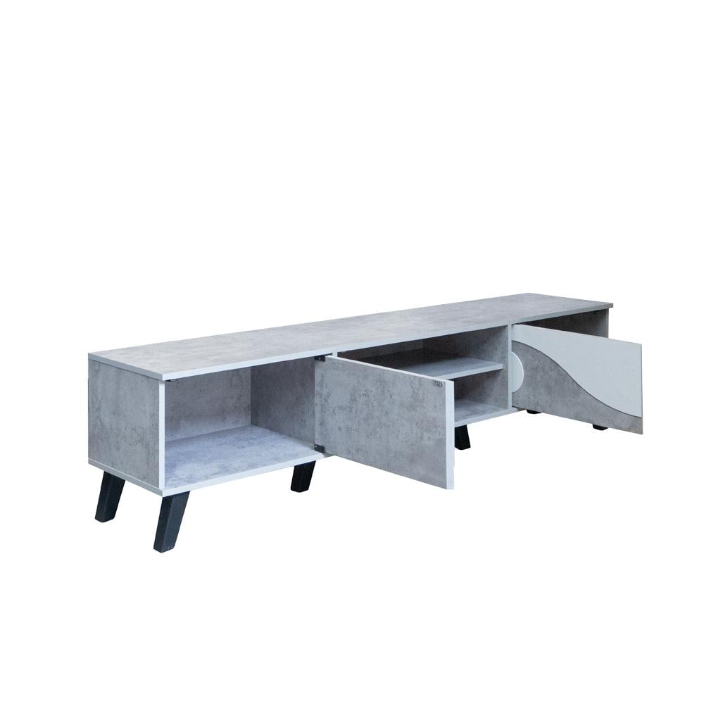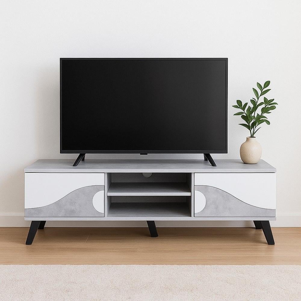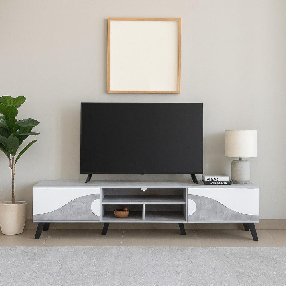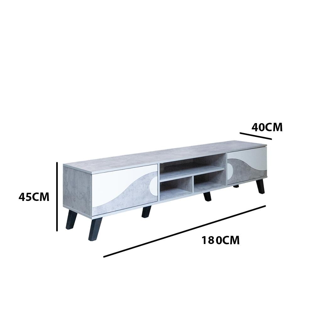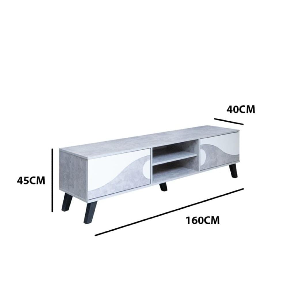 " طاولة تلفزيون خشب ماليزي فاخر بلون رمادي وأبيض أنيق MLY-1080\MLY-1077 - طاولة تلفزيون بروح عصرية "