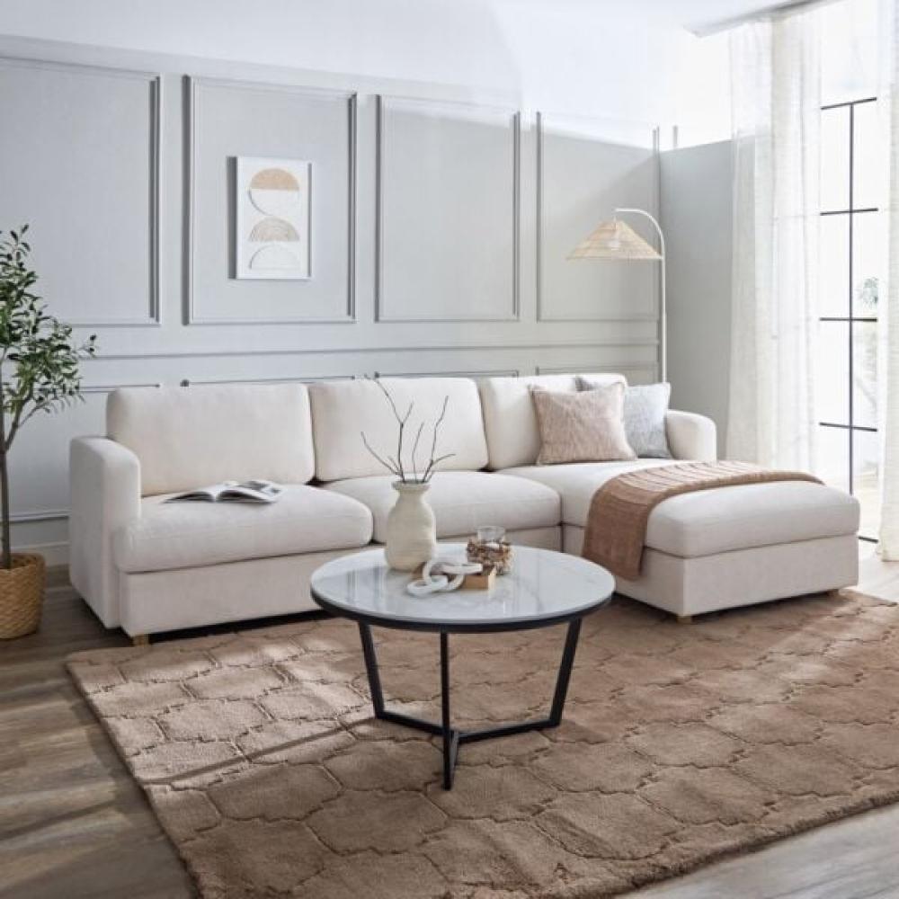كنب زاوية حرف L بلون بيج مميز – لمسة فخامة وراحة استثنائية