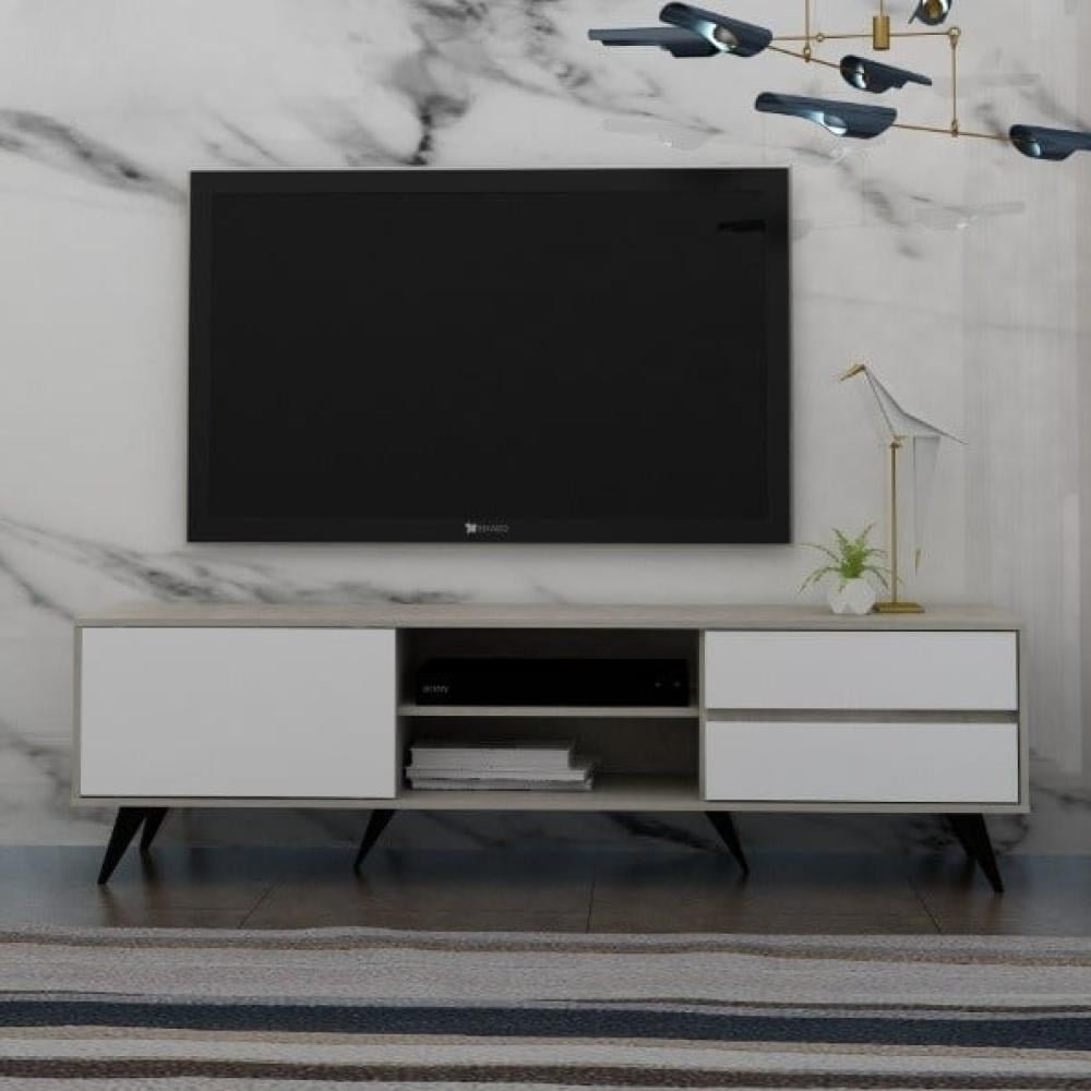 أضف لمسة فخامة إلى منزلك مع طاولة تلفزيون خشب مودرن بلون بيج وأبيض، تجمع بين الأناقة والبساطة في تصميم واحد مميز.