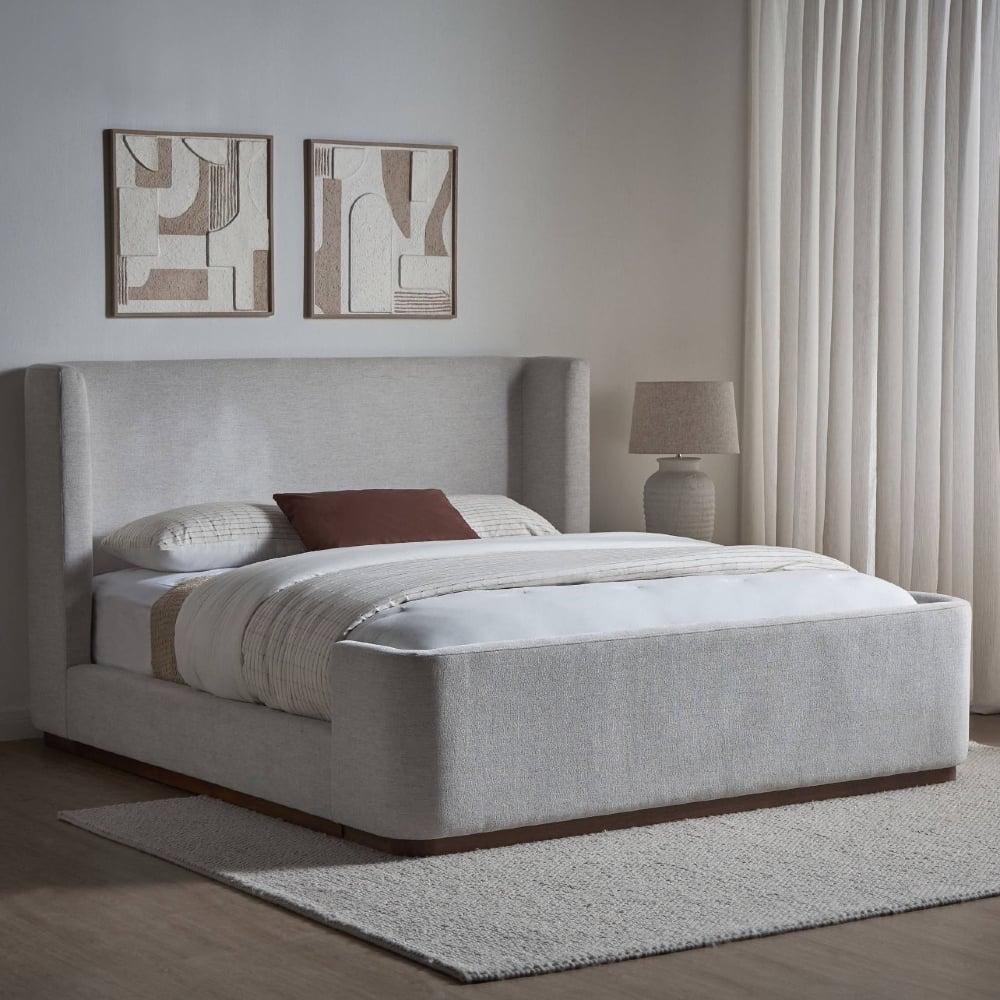 أضف لمسة من الرقي والسكينة إلى غرفة نومك مع هذا السرير العصري باللون الرمادي الهادئ.